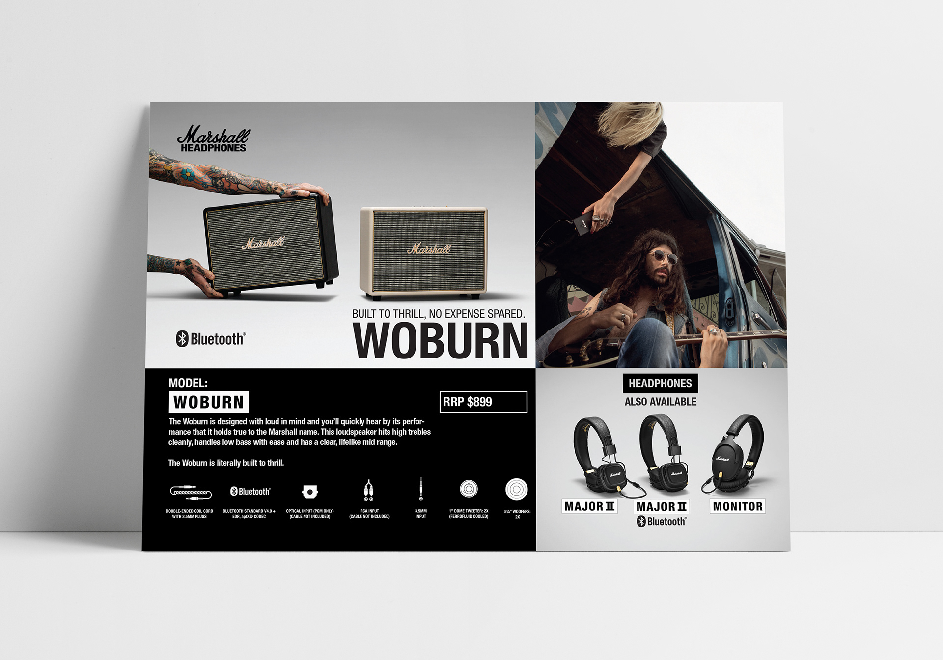 The brief was to create a series (nine in total) of counter graphics for Urbanears and Marshall Headphones. Each graphic had to adhere to strict branding guidelines and use the pre-approved imagery from the suppliers. These graphics will be used in-store at Myer and be displayed above or next to the physical product, acting both as an PIS and a sales aid.